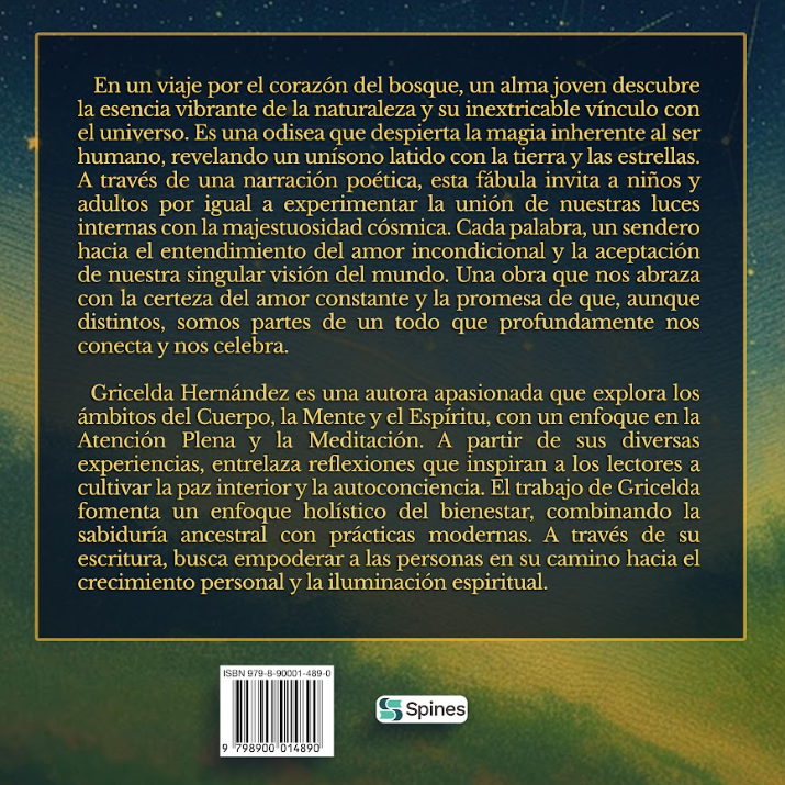 En un viaje por el corazón del bosque, un alma joven descubre la esencia vibrante de la naturaleza y su inextricable vínculo con el universo. Es una odisea que despierta la magia inherente al ser humano, revelando un unísono latido con la tierra y las estrellas. A través de una narración poética, esta fábula invita a niños y adultos por igual a experimentar la unión de nuestras luces internas con la majestuosidad cósmica. Cada palabra, un sendero hacia el entendimiento del amor incondicional y la aceptación de nuestra singular visión del mundo. Una obra que nos abraza con la certeza del amor constante y la promesa de que, aunque distintos, somos partes de un todo que profundamente nos conecta y nos celebra.