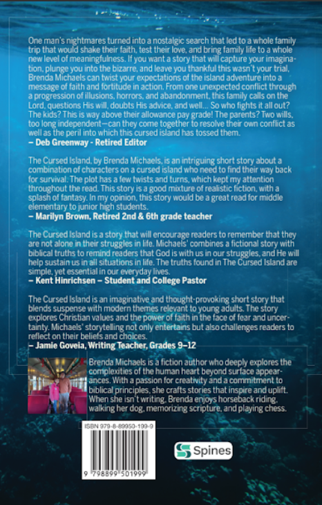One man’s nightmares turned into a nostalgic search that led to a whole family trip that would shake their faith, test their love, and bring family life to a whole new level of meaningfulness. If you want a story that will capture your imagination, plunge you into the bizarre, and leave you thankful this wasn’t your trial, Brenda Michaels can twist your expectations of the island adventure into a message of faith and fortitude in action. From one unexpected conflict through a progression of illusions, horrors, and abandonment, this family calls on the Lord, questions His will, doubts His advice, and well… So who fights it all out? The kids? This is way above their allowance pay grade! The parents? Two wills, too long independent—can they come together to resolve their own conflict as well as the peril into which this cursed island has tossed them.